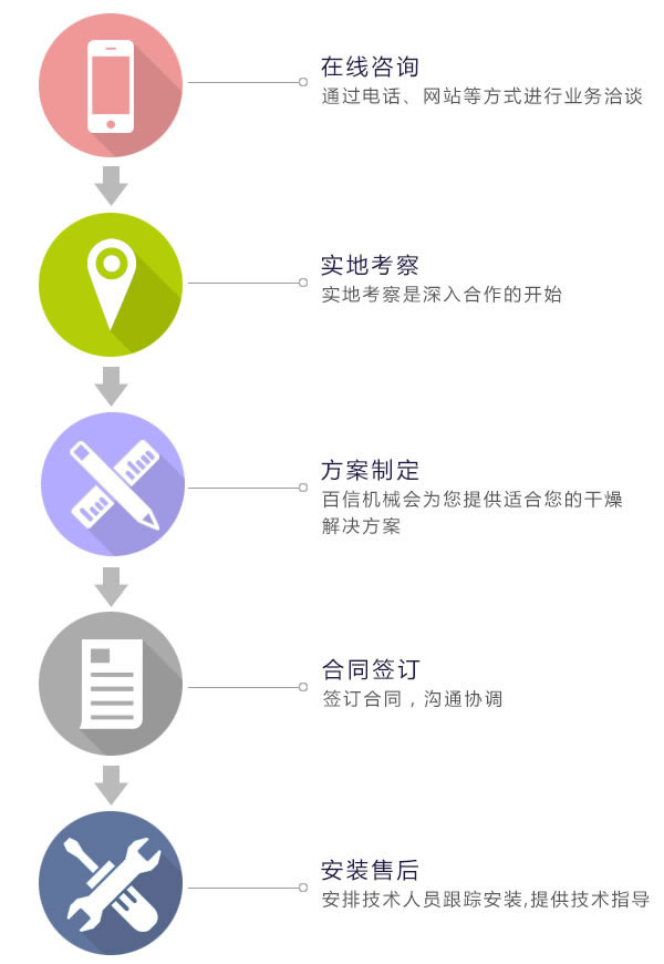 《江洲區食品藥材烘干設備網帶烘干機----百信設備》?合作流程: