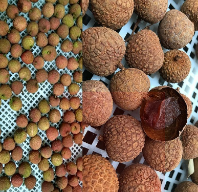 1、采用荔枝烘干機進行干燥,根據去殼與否,加工要求會有不同,特別是在溫度和時間控制上。有些加工商是整果進行烘干,有些是先去殼再烘干。整果烘干溫度可以調高一些,可控制在60℃,烘干時間大約需要30個小時;而去殼的純果肉烘干,一般溫度需控制在50℃左右,烘干時間一般在18個小時即可完成。