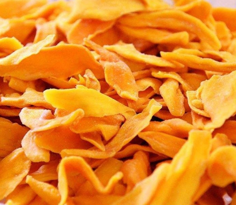 去皮切片:外皮必須去凈,因果皮中含有較多的單寧,如未削凈,在加工過程中容易產(chǎn)生褐變,影響成品色澤。去皮后的果實用鋒利刀片縱向切片,厚度約為8~10mm。芒果片護(hù)色期間添加白砂糖,一層芒果片一層砂糖,上面還要覆蓋一層砂糖。砂糖腌制時間不能太長,一般為8小時,過后抽出糖水,把糖水入鍋濃縮,再將果塊倒入糖水中,如果砂糖不夠還可以補加,使糖水濃度達(dá)到45%~60%。注意芒果片不能直接煮制。浸泡糖液初始溫度30左右為宜。浸漬過程的添加成份均要求符合食品衛(wèi)生標(biāo)準(zhǔn)。將芒果片小心取出,瀝干水分后,均勻的擺在烘干托盤上,之后放入烘干房里干燥。一段:時間4H,溫度45,濕度控制在65%。二段:時間6H,溫度55,濕度控制在42%。第三段:時間2H,溫度62,濕度控制在26%。時間運行結(jié)束即可保證芒果干烘干完畢。