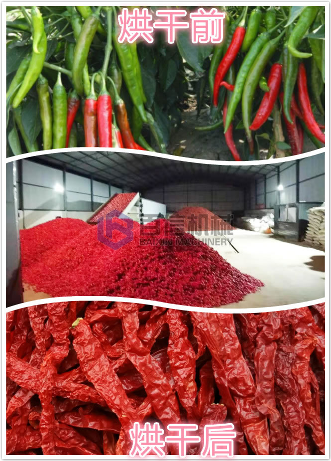 辣椒烘干機是一種針對辣椒連續(xù)式烘干而生產(chǎn)出來的小型設(shè)備,規(guī)格是從六米開始,根據(jù)您的日加工量來量身定制,深受中小型加工廠以及辣椒種植戶的喜愛。百信機械做過的辣椒烘干案例很多,從辣椒的種類來說,有紅辣椒、小青椒、朝天椒、尖椒等;從烘干要求來說,客戶有的整個辣椒進行烘干,也有是將辣椒進行切塊再烘干的;從烘干量來說,有300斤到6噸不等。而從機型的選擇來看,有的選擇帶式烘干機,有的選擇空氣能烘干機,各種機型、各種烘房,均可量身定制,不同品種,不同類型,百信機械都會提供專業(yè)全面的烘干方案,在保證烘干質(zhì)量及效果的基礎(chǔ)上更大程度地為客戶節(jié)省能耗、費用等。百信辣椒烘干機主要特點是: